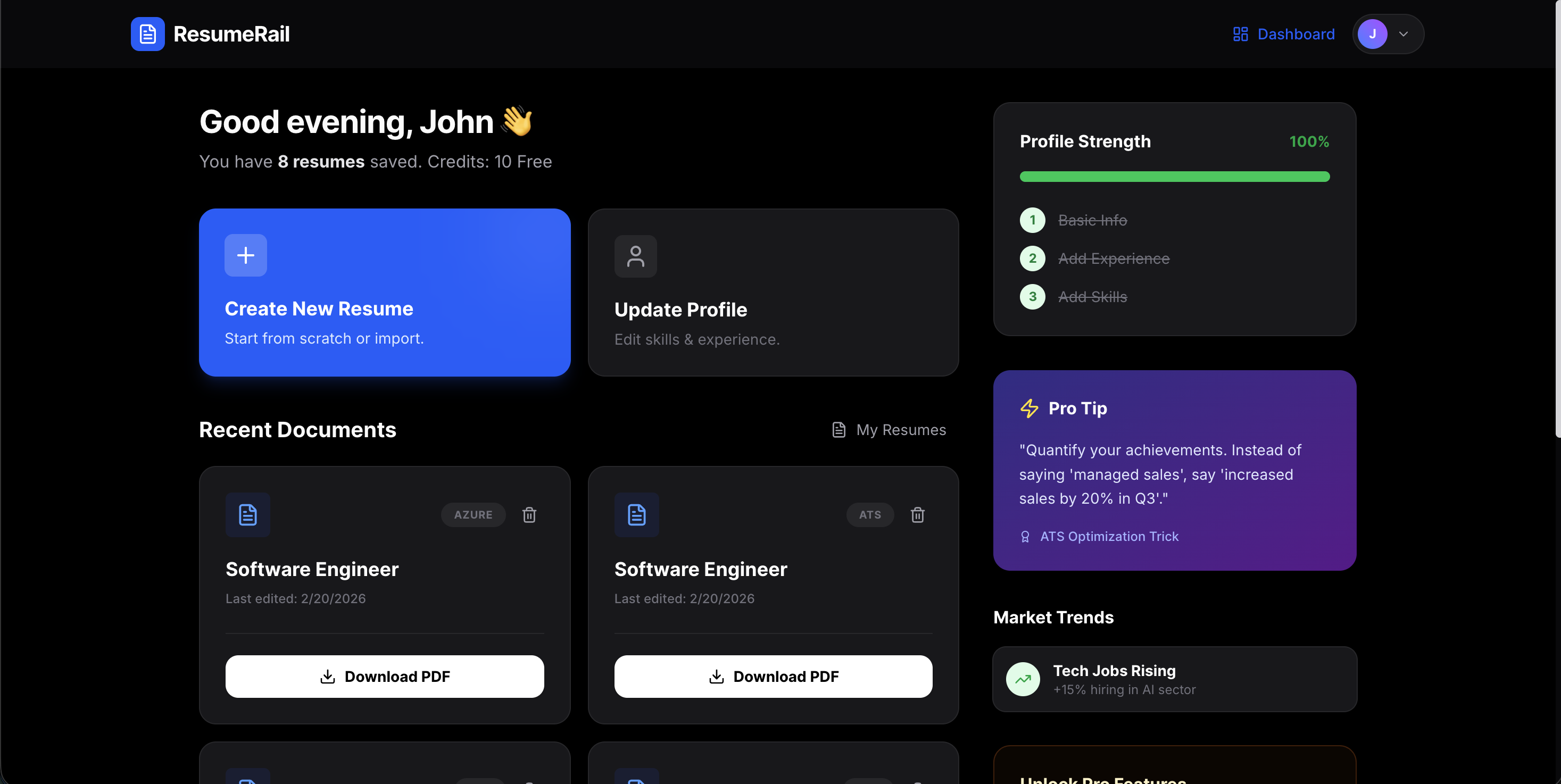 ResumeRail is an AI-powered platform that helps job seekers generate professional resumes, optimize them for ATS systems, and manage job applications more effectively.